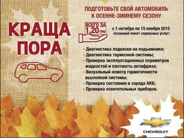 В сервисном центре АВТО ГРУП действует лучшее предложение по подготовке автомобиля CHEVROLET к осенне-зимнему сезону!