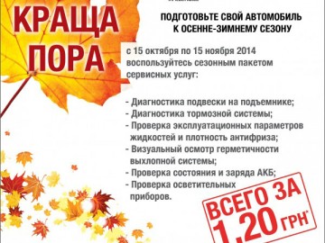 В период с 15 октября по 15 ноября 2014 мы предлагаем Вам воспользоваться сезонным пакетом услуг всего за 1,20грн.!