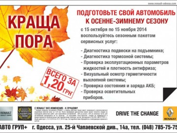 Не теряйте время – приезжайте! В сервисном центре СЦ ООО «АВТО ГУП+» действует лучшее предложение по подготовке автомобиля RENAULT к осенне-зимнему сезону!