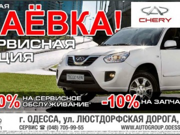 Каждый владелец автомобиля ЗАЗ, CHERY, при проведении работ по ТО, ТР на СЦ ООО «АВТО ГРУПП» в период с 5 по 8 мая 2014 года, получает право на получение скидки в размере 30% на услуги сервиса и 10% на запасные части.