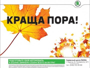 В сервисном центре ДП «АВТОЦЕНТР ОДЕССА» действует лучшее предложение по подготовке автомобиля Skoda к осенне-зимнему сезону!