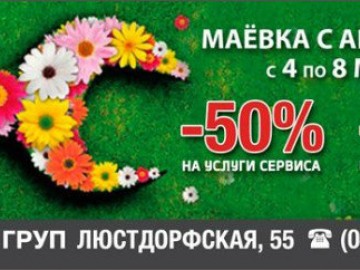 В период, с 4 по 8 мая, каждый владелец автомобиля CHEVROLET, ZAZ, CHERY имеет возможность обслужить свой автомобиль* со скидкой 50%** и приобрести запасные части со скидкой 15%!
