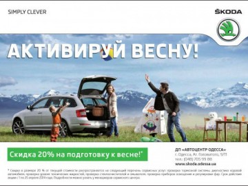 Сервисный центр ДП "АВТОЦЕНТР ОДЕССА" приглашает всех владельцев автомобилей SKODA принять участие в сервисной акции и подготовить свой автомобиль к весне с экономией 20%!*.