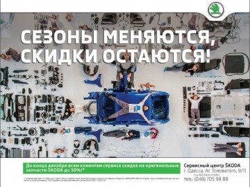 Информируем Вас, что с 03.11.2014 по 31.12.2014 в официальном сервисном центре Skoda ДП "АВТОЦЕНТР ОДЕССА" стартует акция, предоставляющая скидку в размере до 30% на следующие группы товаров:.