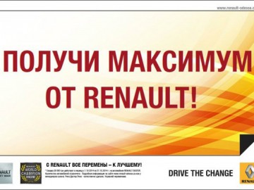 Создавая максимально привлекательные условия для приобретения автомобилей европейской марки и заботясь о своих клиентах, компания Renault предлагает покупателям воспользоваться кредитным предложением по программе Renault Finance. В октябре будет действовать беспроцентный кредит на весь модельный ряд: 0% на 1 год*. Ставка по кредиту остается фиксированной в гривне на весь срок кредитования.