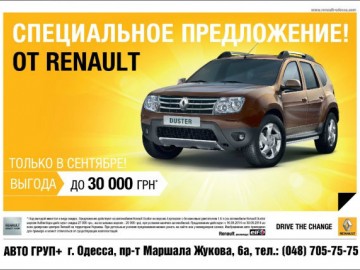 До 30 сентября в Автоцентре RENAULT ООО "АВТО ГРУП+" действует специальное ценовое предложение.
