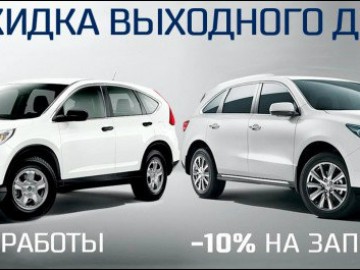 Компания Акура центр Киев*, официальный дилер автомобилей марки Acura в Украине, приглашает на сервис уик-энд! Каждый клиент, который приедет на обслуживание в период с 9 июля по 31 октября 2016 года в выходной день (субботу или воскресенье), получит скидку** на абсолютно все работы 30%, на ЗЧ – 10%.