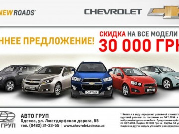 Специальное предложение на полный модельный ряд от официального дилера Chevrolet в Одессе компании АВТО ГРУП на Люстдорфской, 55 распространяется на компактный и народный Aveo, технологичный Cruze, грациозный Malibu, динамичный Orlando, универсальный Captiva, ультрасовременный Tracker, легендарный NIVA!