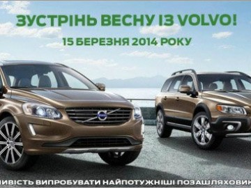 Весна – початок усього нового: вражень, захоплень та особистих перемог. 15 березня 2014 року запрошуємо вас зустріти з нами весну, а також випробувати надпотужні та винятково комфортні позашляховики Volvo серії XC – Volvo XC60, Volvo ХС70, Volvo XC90 та елегантний Volvo V40 Cross Country.