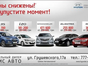 Официальный дилер автомобилей HYUNDAI в Одессе компания БАЗИС АВТО информирует о снижение регулярных цен на популярные модели в семействе Hyundai.