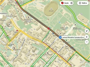 В Киеве затруднено движение по улице Грушевского от стадиона "Динамо" им. В.Лобановского, Бассейной, Большой Васильковской от площади Льва Толстого до бульвара Тараса Шевченко.