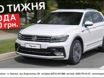 В рамках проекту «Автомобіль тижня» у Вас є унікальна можливість стати власником стильного та надійного Volkswagen Tiguan в преміальній комплектації.