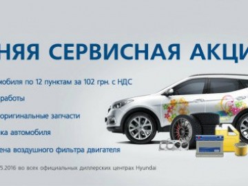 Официальный дилер автомобилей Hyundai в Киеве – компания «Олимп Моторс» - объявляет о запуске весенней сервисной акции, которая проходит в период с 20 апреля по 20 мая 2016 года на наших Станциях сервисного обслуживания.