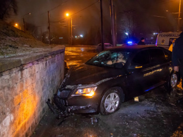 "На большой скорости Skoda убегал от патрульных, его преследовали несколько экипажей. При повороте с Набережной Победы на Сичеславскую Набережную, водитель не справился с управлением, заехал на тротуар и врезался в кирпичное ограждение. Также автомобиль снес несколько секций дорожного ограждения", – говорится в сообщении.