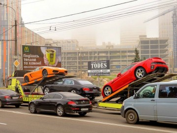 В Днепропетровске сфотографировали автовоз с суперкарами. (Фото)