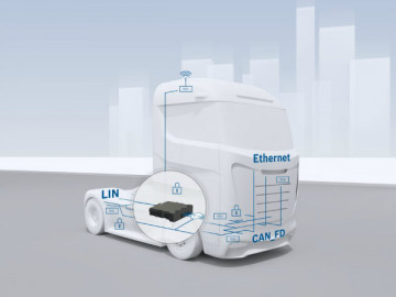 Центральный шлюз контролирует обмен данными между ЭБУ грузовика и окружающей автосредой по всем системам и, следовательно, является центральным узлом связи для подключенных автомобилей. Современные технологии передачи и шифрования информации делают обмен данными особенно безопасным. Они предотвращают незаконный доступ к сети транспортных средств с помощью межсетевого экрана или системы обнаружения вторжений, разработанной дочерними компаниями Bosch\ETAS и ESCRYPT.