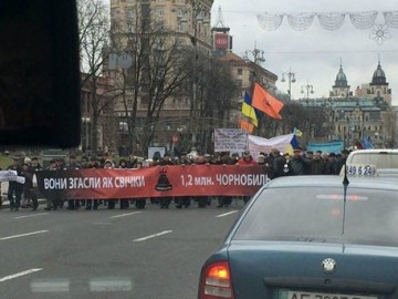 В Киеве чернобыльцы, проводящие шествие, перекрыли несколько полос движения проезжей части на Крещатике, сообщает .