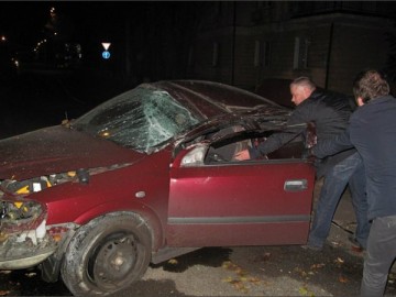 ЧП случилось 23.10.14, около 03.00 утра. Старенький Opel Astra на приличной скорости двигался по улице Гетьмана в сторону Довженко - Дорогожичей. Что случилось с водителем, не известно, но он вдруг потерял управление своей машиной и поехал в ограждение. Удар был такой силы что барьер тут же отвалился, а машина полетела вниз.