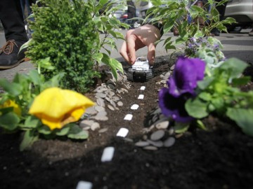 Полчаса активисты стояли на тротуаре и охраняли цветы, чтобы их не украли.