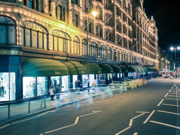 Инсталляции, выполненные из алюминиевых каркасов в ярких цветах, установили возле универмага Harrods на Бромптон-Роад, а также на улицах в районах Найтсбридж и Мейфэр.