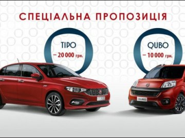 Компания «НИКО Диамант» делает выгодное предложение на модели 2016 года выпуска. На автомобиль Fiat Tipo экономия составляет 20 000 грн., на Fiat Qubo – 10 000 грн.