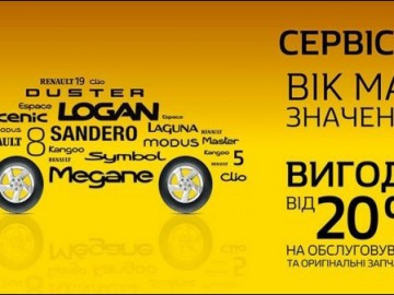 «НИКО Прайм Мегаполис», официальный дилер Renault в Киеве и Киевской области, сообщает о действии программы лояльности постгарантийного парка «Возраст имеет значение», согласно этой программе автомобили возрастом от 5 лет могут обслуживаться в официальной сервисной станции Renault с выгодой от 20% на запасные части и работы по их замене..