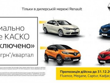 «НИКО Прайм Мегаполис», официальный дилер Renault в Киеве и Киевской области, сообщает об акционном предложении «Максимально выгодное КАСКО». Предложение действует до 31 декабря 2016 года. .