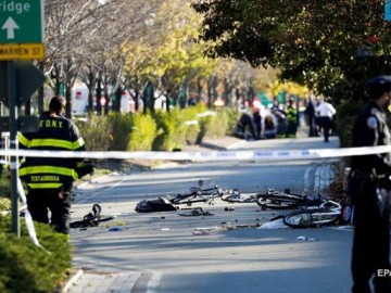 В Нью-Йорке грузовик въехал в толпу людей - погибли 8 человек. (Фото)