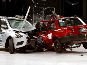 В краш-тесте участвовал седан Nissan Tsuru, который выпускается в Мексике практически без измерений последние 25 лет и представляет собой модель Sentra третьего поколения. Tsuru cтолкнули с самой доступным современным «Ниссаном» на американском рынке — Versa 2016 модельного года.