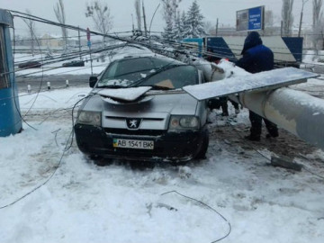 В Виннице утром в пятницу, 9 февраля, недалеко от Центрального автовокзала на автомобиль упала электроопора. Об этом сообщили в областном управлении ГСЧС.