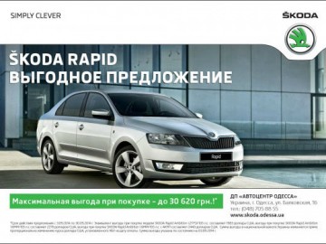 Специальное предложение на автомобили SKODA Rapid завершает действие 30 сентября 2014 года. Спешите приобрести бестселлер SKODA в официальном дилерском центре ДП "АВТОЦЕНТР ОДЕССА" с максимальной выгодой - до 30 620 грн.* только до конца текущего месяца!.