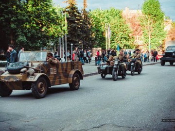 В пробеге принимают участие два мотоцикла М72, грузовик ГАЗ-63, внедорожник Volkswagen Kubelwagen, которые принадлежат одному из военно-исторических клубов, сообщил блогер Артем Гетьман.