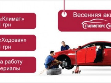 Только этой весной официальная станция технического обслуживания «Италмоторс Украина» предлагает комплексный осмотр Вашего автомобиля после зимней эксплуатации и подготовку к беззаботному лету по акционной цене!.