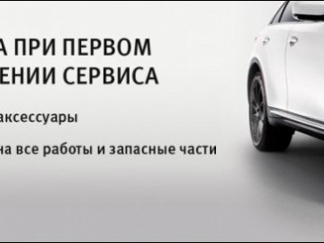 *Срок действия предложения с 01.01.2016 по 31.03.2016. Дисконт предоставляется всем клиентам, фамилии которых не зафиксированы в базе «ВиДи-Либерти», на все работы, оригинальные з/ч – 20%, аксессуары – 5%, которые есть в наличии на складе Infiniti «ВиДи-Либерти» либо будут привезены под заказ. Скидки по данному предложению не суммируются с другими скидками «ВиДи-Либерти». Дополнительную информацию можно получить в официальном сервисном центре Infiniti «ВиДи-Либерти» или по телефону отдела сервиса: (044) 591 00 77
