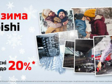 *Акция действует с 1 декабря 2019г. по 29 февраля 2020г. включительно в сети официальных дилеров Mitsubishi Motors в Украине. Акция действует на ограниченный ассортимент, склад запасных частей и технических жидкостей. За подробной информацией о перечне акционных товаров, а также – о соотношении цен без выгоды и с выгодой, обращайтесь к официальным дилерам Mitsubishi Motors.