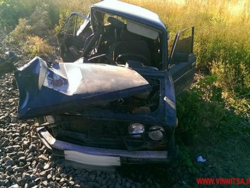 Винницкая область: ВАЗ пытался проскочить ж/д переезд и угодил под поезд. (Фото)