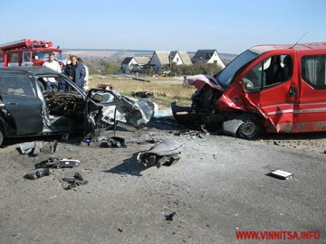10 октября в 8:30 в г. Ладыжин Винницкой области на ул. К. Маркса, по предварительным данным, 30-летний водитель автомобиля Daewoo Nubira, не убедившись в безопасности выполнения маневра обгона, выехал на полосу встречного движения, где совершил столкновение с микроавтобусом Ореl Vivaro.