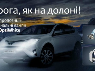 На початку нового зимового сезону в офіційній дилерській мережі Toyota в Україні діють вигідні пропозиції на лампи Toyota OptiWhite. Встигніть придбати оригінальні Toyota OptiWhite — ідеальне поєднання стилю та безпеки.