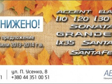 На протяжении января в автосалонах компании Автоберег, официального дилера ТМ HYUNDAI в Украине, действует специальное предложение на покупку автомобилей Hyundai i10, i20, Accent, Elantra, i30, Sonata, i40, Grandeur, ix35, а также Santa Fe!.
