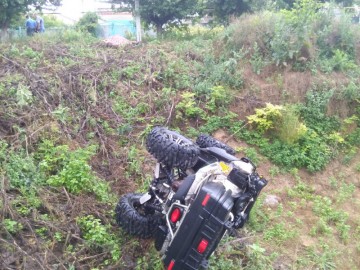 В результате столкновения квадроцикл перевернулся. В транспорте находился 4-летний пассажир.
