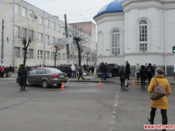 15 января, около 14:00, на перекрестке улиц Киевская-Щорса столкнулись два автомобиля Ford и ЗАЗ-Vida. После удара внедорожник вылетел на тротуар и ударился о фасад здания Свято-Михайловского кафедрального собора, сообщает .