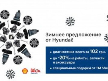 Только с 21 ноября по 30 декабря 2016 г. Хюндай Мотор Украина, официальный дистрибьютор автомобилей Hyundai в Украине запускает специальное предложение на сервис.