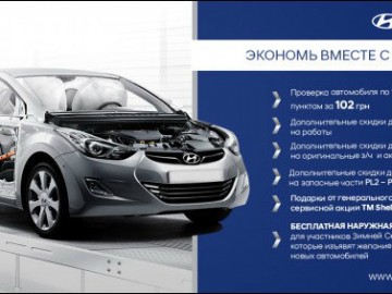 * скидка предоставляется всем клиентам СТО на все работы за исключением кузовных, малярных работ, работ по установке дополнительного оборудования и работ по сезонному шиномонтажу, в период проведения зимней сервисной акции.