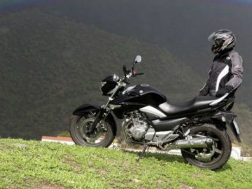 SUZUKI INAZUMA (GW250) - стильный современный мотоцикл класса "стрит" по разумной цене. Внешне GW250 наследует черты мускул-байка SUZUKIB-King: интегрированные в боковые панели индикаторы поворотов и фигурную фару, имеет большую и современную панель приборов с указателем включенной передачи. Сердце мотоцикла - 248-кубовый 4-тактный 2-цилиндровый экономичный двигатель (DOHC) с водяным охлаждением мощностью 25 л.с. и крутящим моментом 22 Нм.