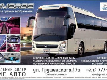 Universe - туристический автобус Hyundai, пришедший на смену зарекомендовавшей себя серии Hyundai Aero. Длительная и тщательная разработка, многочисленные усовершенствования и современные технологии позволили создать по-настоящему комфортабельный, функциональный и долговечный автобус с современным дизайном.