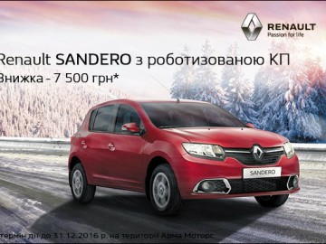 Друзі, Арма Моторс оголошує про запуск спеціальної пропозиції на Sandero та Sandero Stepway з роботизованою коробкою передач, що триватиме тільки до 31 грудня 2016 р. включно.