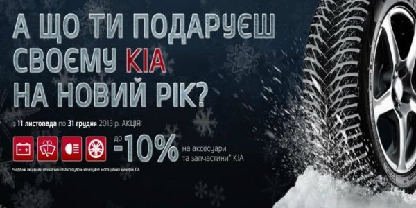 Спешите сделать подарки своему автомобилю КІА по выгодным ценам. Акция действует до 31.12.2013 года.