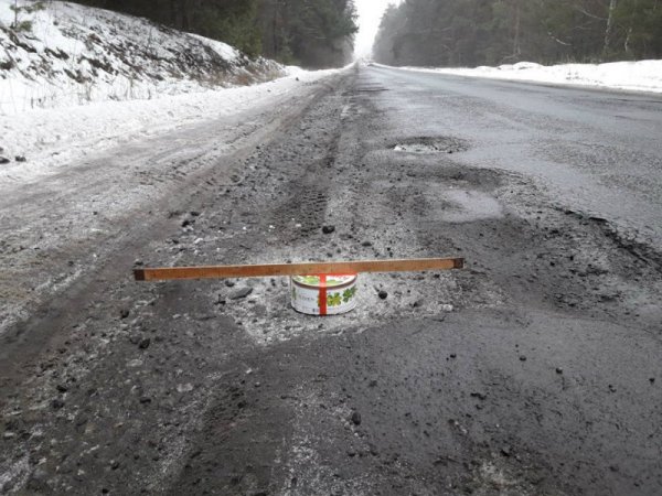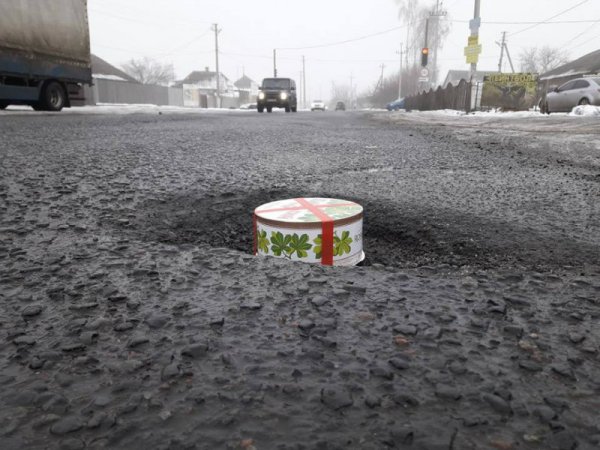Именно эту сладость использовали активисты, решившие измерить глубину ям на дорогах по трассе Р-78 Харьков – Гороховатка. Получились колоритные снимки.