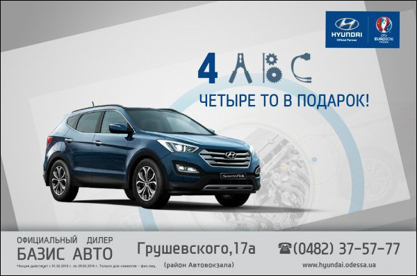 Компания ДП «Базис Авто», официальный дистрибьютор автомобилей ТМ HYUNDAI в Одессе, приняла решение о продлении сервисной акции на кроссовер – Hyundai Santa Fe.