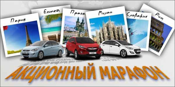 Старт дан! Каждый Клиент который приобретет автомобиль из модельного ряда HYUNDAI с 07 декабря 2013 года по 31 января 2014 года, в автосалоне компании «ПАРИТЕТ» на Автозаводской 24, сможет воспользоваться рядом привлекательных акционных предложений и на финише марафона стать участником розыгрыша туристического путешествия*. Победителя ждут: Прага или Париж, Милан или Рим, горнолыжные курорты Словакии или Польши, солнечные пляжи Египта.